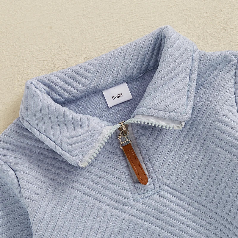Toddler Boys 2Pcs Outfit Set Long Sleeve Lapel Half Zip Up Pullover Solid Color Pants Set