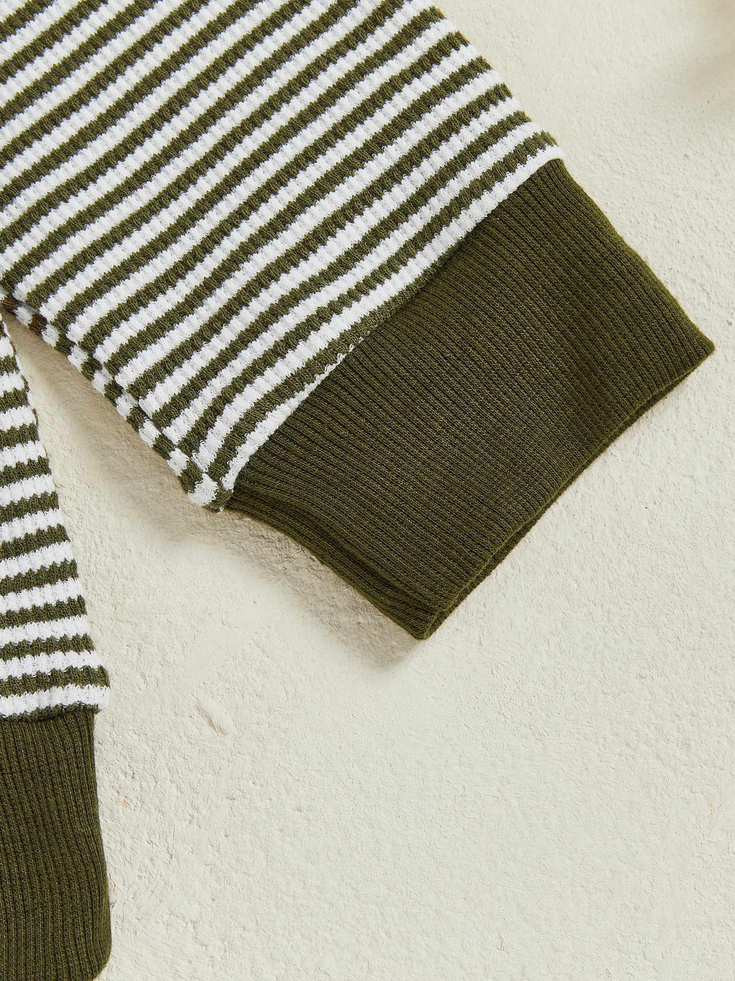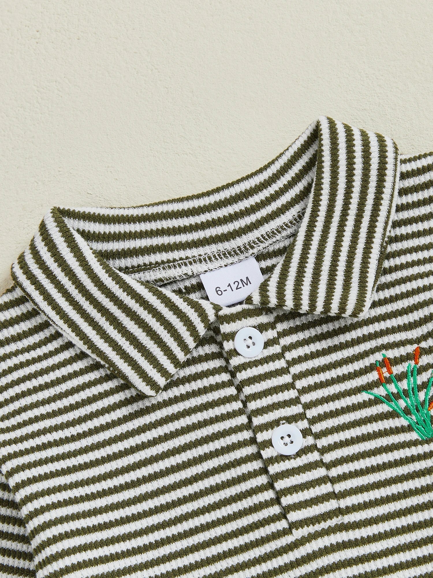 Baby Toddler Boys 2Pcs Long Sleeve Embroidery Duck Top with Striped Pants Infant Clothes Set